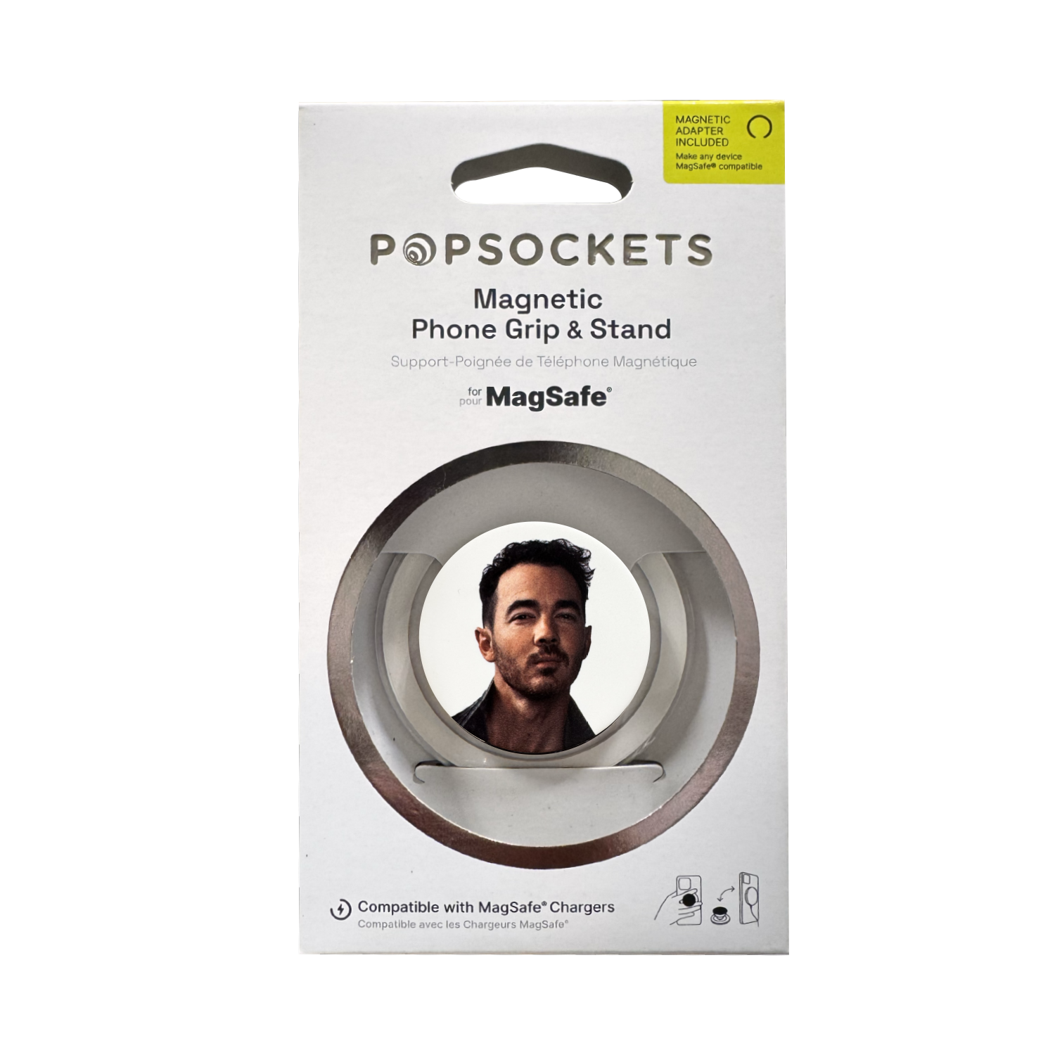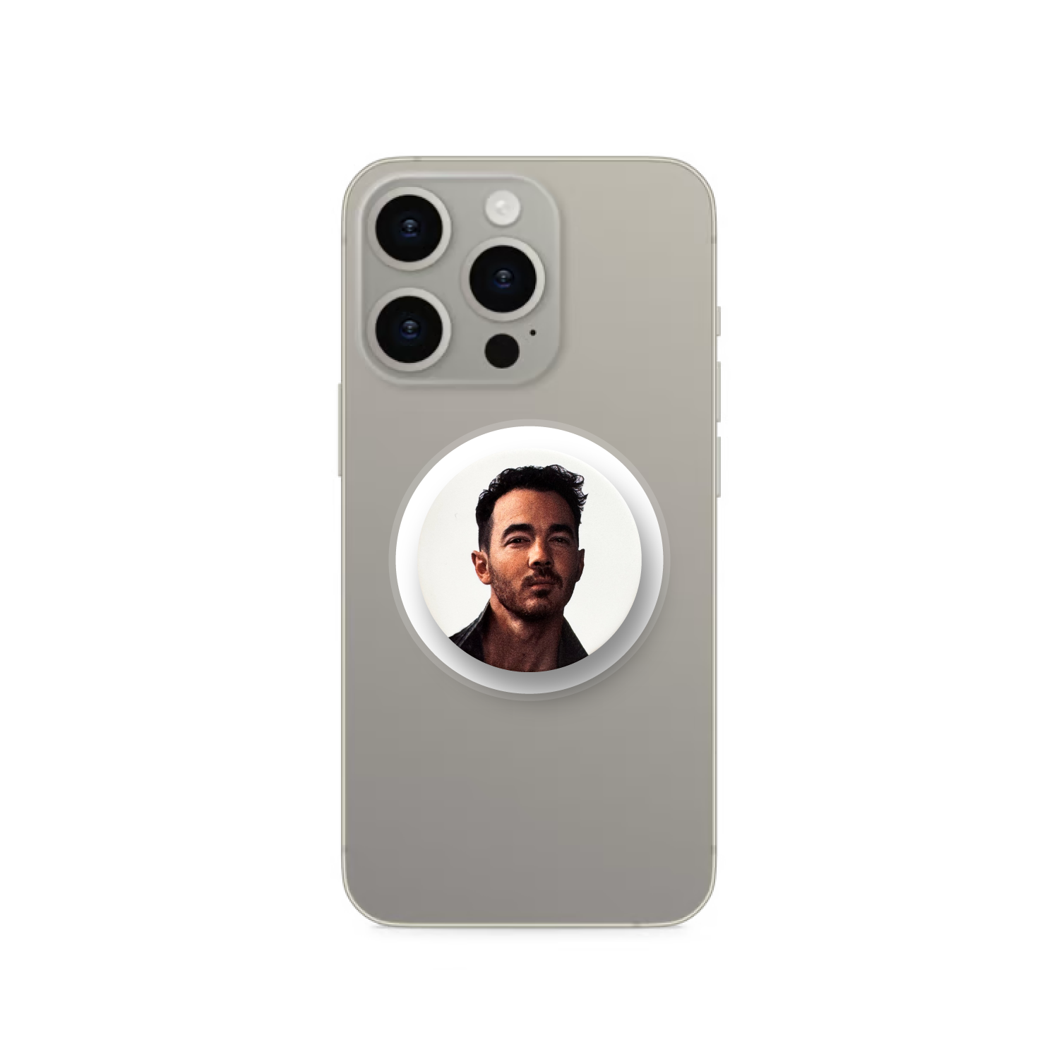 Kevin Jonas featured on a pop-socket with a magnetic phone grip and stand. Compatible with MagSafe chargers.